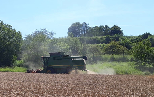 Mit unserem John Deere Mähdrescher erledigen wir Ihren Auftrag leistungsstark und zuverlässig. Wir sind für Getreide und Mais bestens gerüstet ! Mit unseren klappbaren Erntevorsätzen der Firma Geringhoff ist eine hohe Flächenleistung in unserer klein parzellierten Struktur möglich, da der lästige Schneidewerksan- und abbau entfällt !